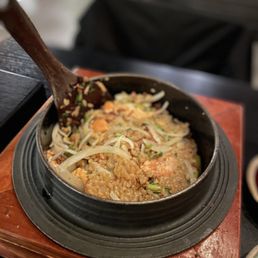 Ordered takeout for rice cake. It turned out that they have three different kinds of rice cakes. I'm glad I asked about the differences and ordered the one I wanted. It was like an appetizer portion. There are four huge pieces of rice cakes, with a few slices of fish cakes and beef briskets, and one hard boiled egg. The flavor is sweet and spicy, not too spicy but definitely sweet. I ordered an early dinner so when I picked up the dinner, there were not too many people. I had a hard time finding out where the entrance was and I still think the one I found was not the front door. Anyway, the restaurant can be accessed through a hotel lobby.
